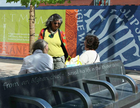 Commissioned by architects, local authorities, city councils and arts organisations, projects have included historic town trails, maps and street-name signing; poetry in street paving, on waterwalls, windows, seating, kerbing and handrailing, and may be seen in Sheffield, Manchester, Reading, Bristol, Plymouth, Dumfries, and Carlisle.